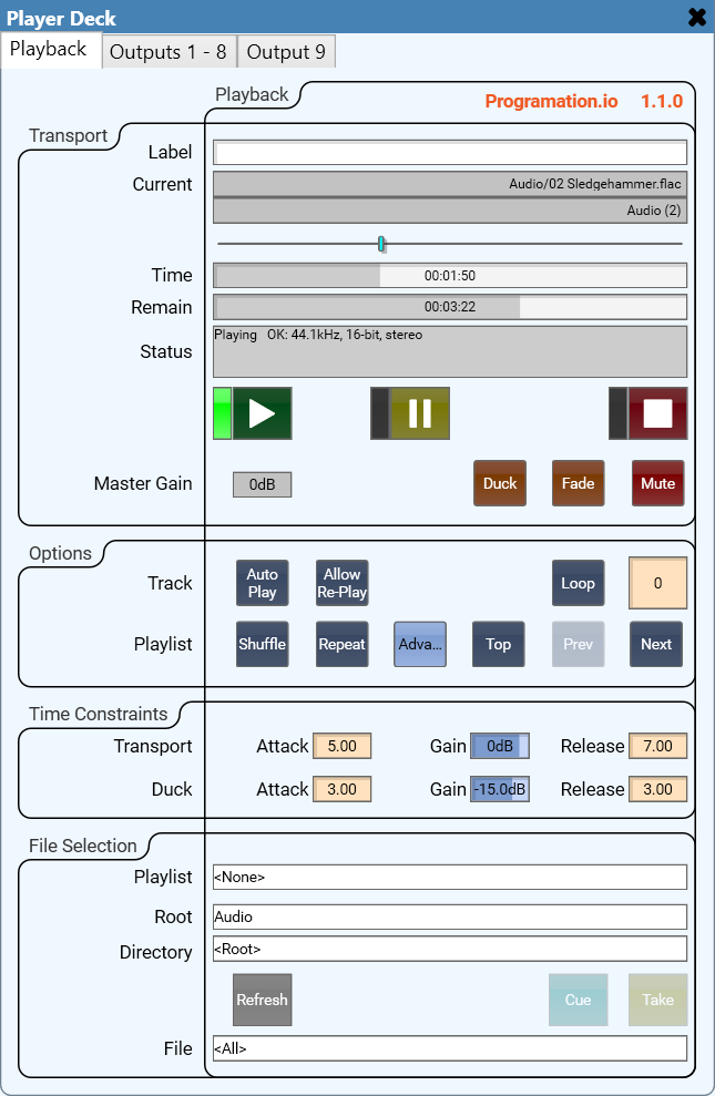 An advanced audio player with extended features for any application. Auto-fading, DJ-style cueing, individual channel control, and more.