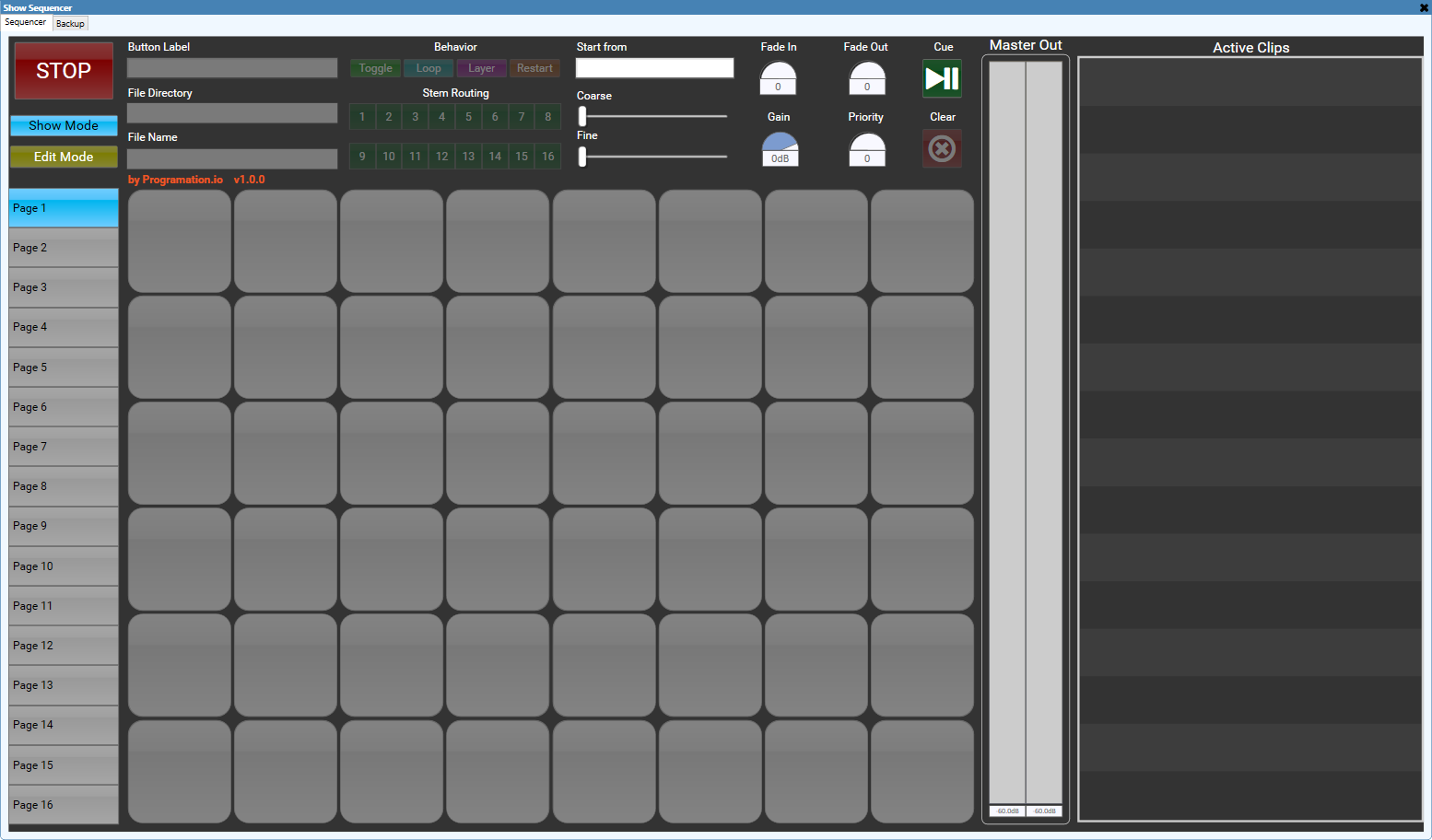 A sample-sequencer style audio player perfect for interactive shows. Multiple buttons allow for quick and easy audio cues.